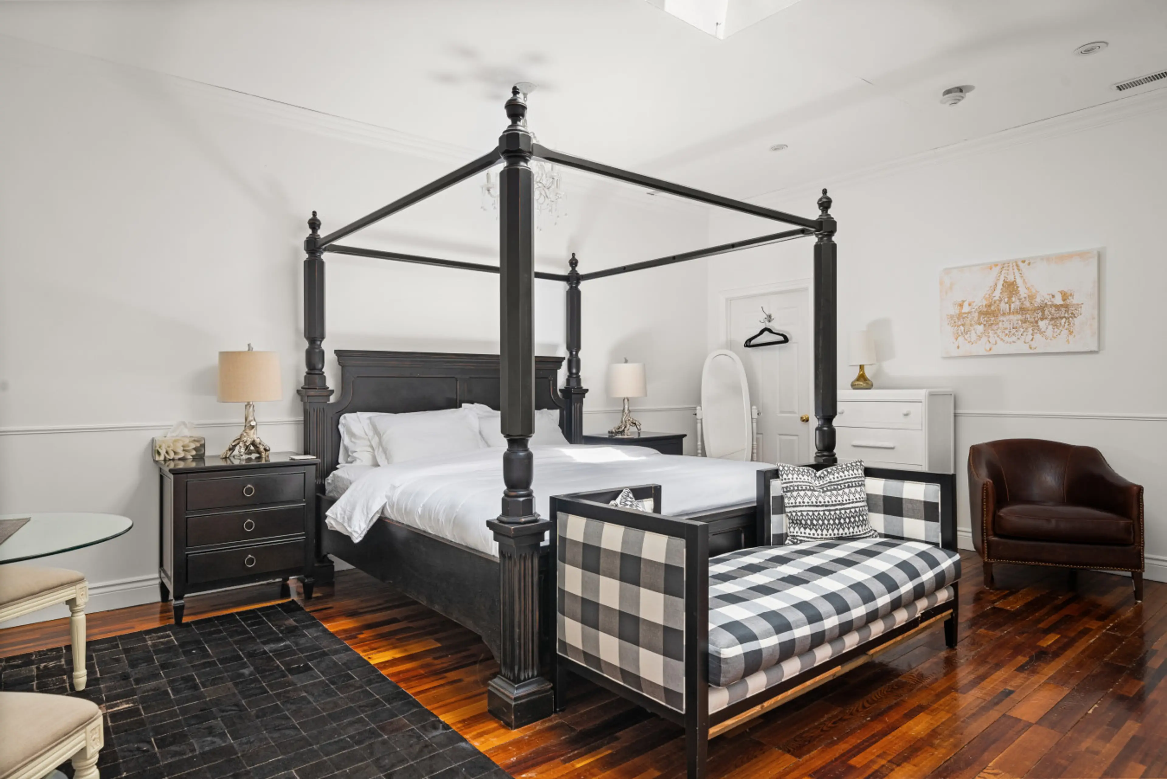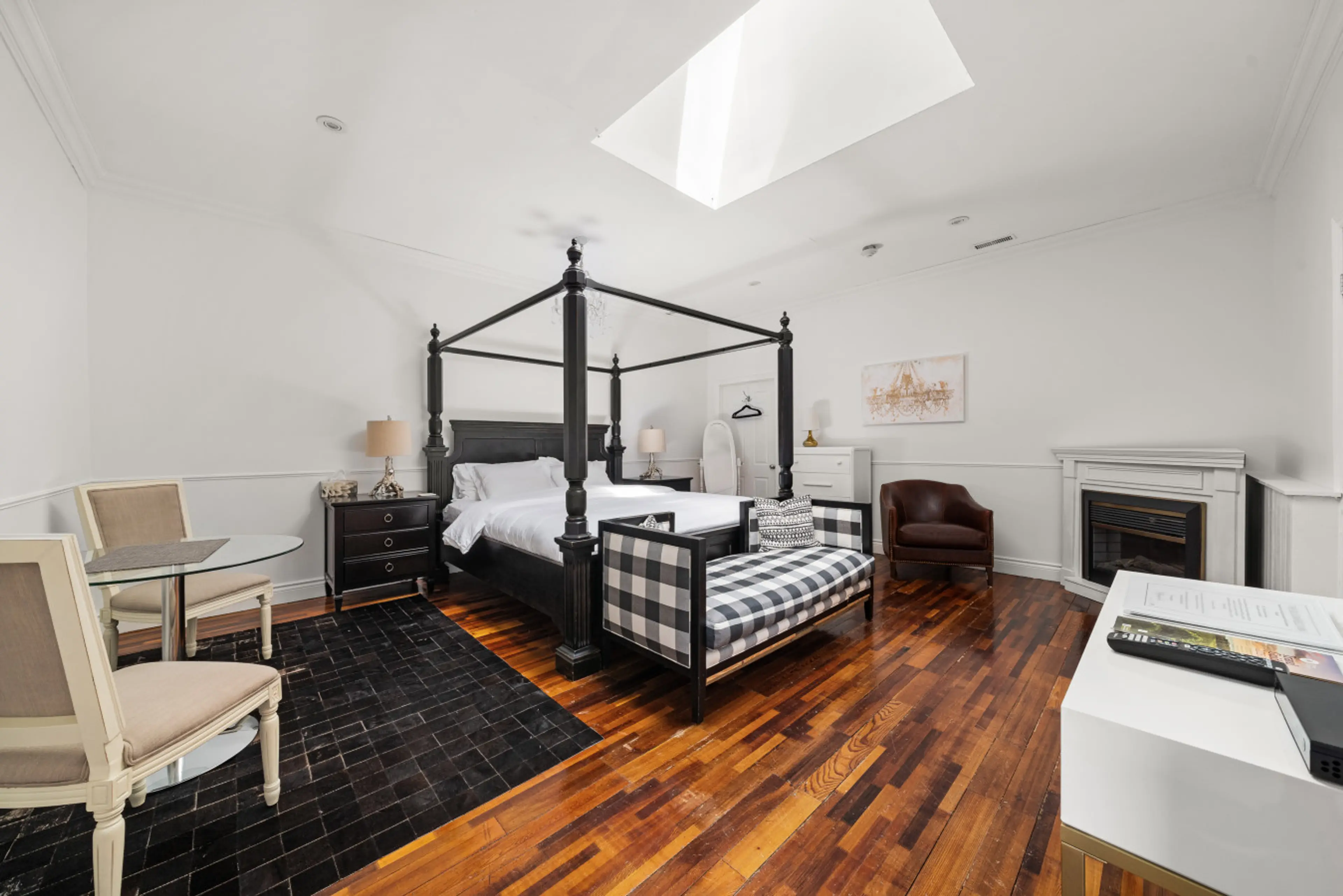 The Hinterland is a studio unit with a private entrance featuring one king bed, a 3-piece bathroom, and a full kitchen. It features a seating area with a TV, offers coffee and tea-making facilities, has air conditioning, and is pet-friendly.